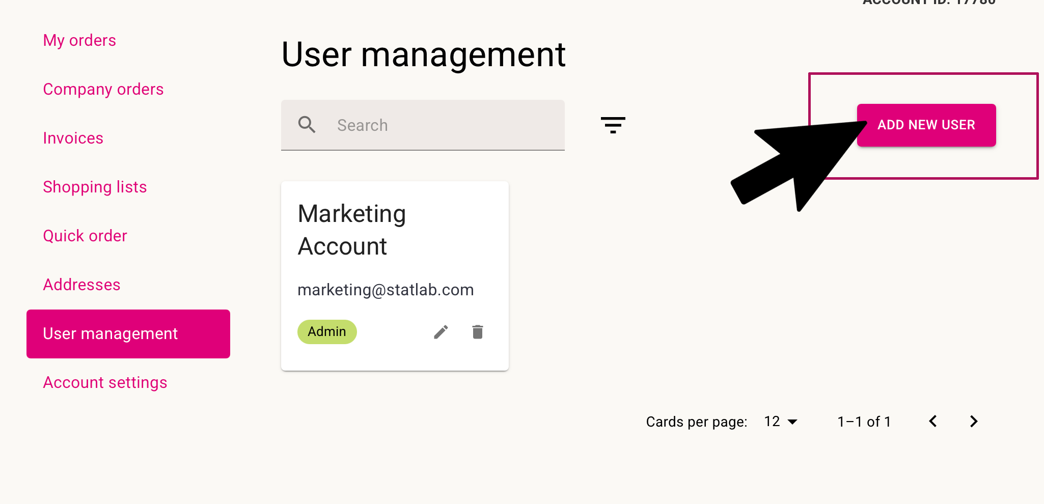 You should see a pink button to the right to add new users. If you don't see this, it means you are not the admin user. If you should be the administrator for your account, please contact us here with a request, and we will add administrative permissions to your user.